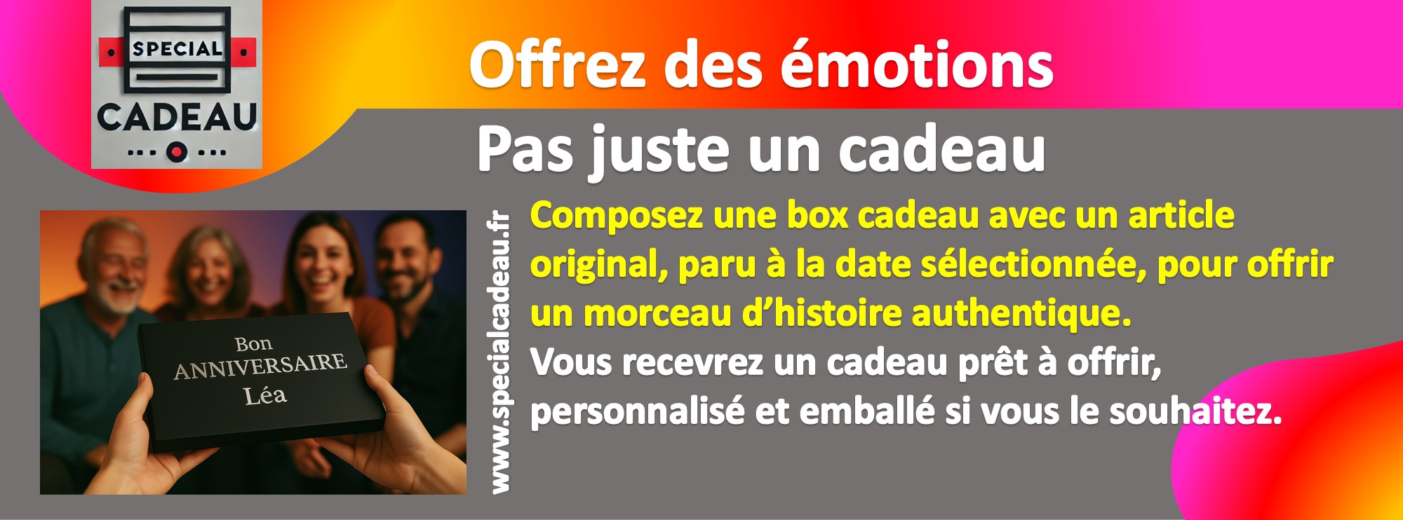 Découvrez une expérience unique sur specialcadeau.fr, le site spécialiste du magazine d'anniversaire et cadeaux vintage par date . Transformez un souvenir en cadeau d'anniversaire original inoubliable !
